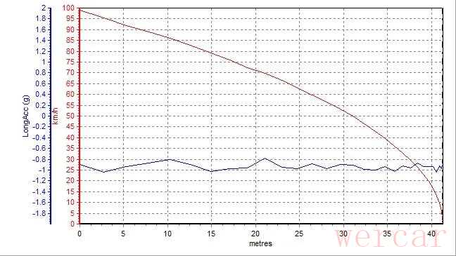 在刹车性能方面,悦动的表现也是中规中矩。经过多次测试,现代悦动的百公里制动最佳成绩为42.16米。