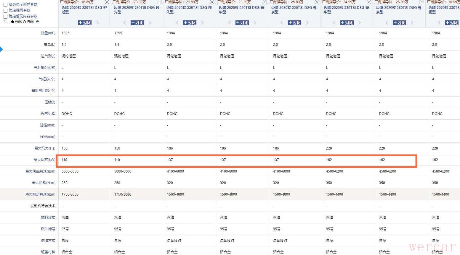 那为什么又有很多司机感觉不到动力损失呢?那是因为他们开的都是大排量的汽车,以迈腾为例,1.4T车型发动机最大功率110KW,2.0T低功率发动机最大功率为137KW,2.0T高功率发动机最大功率为162KW,最大相差53KW,车内空间一模一样,为了达到相同制冷量,使用同样功率压缩机,压缩机功率占发动机功率越大,车辆动力越差,反之越好。所以,小排量发动机在打开空调后,动力明显变差,大排量发动机反而感觉不到。