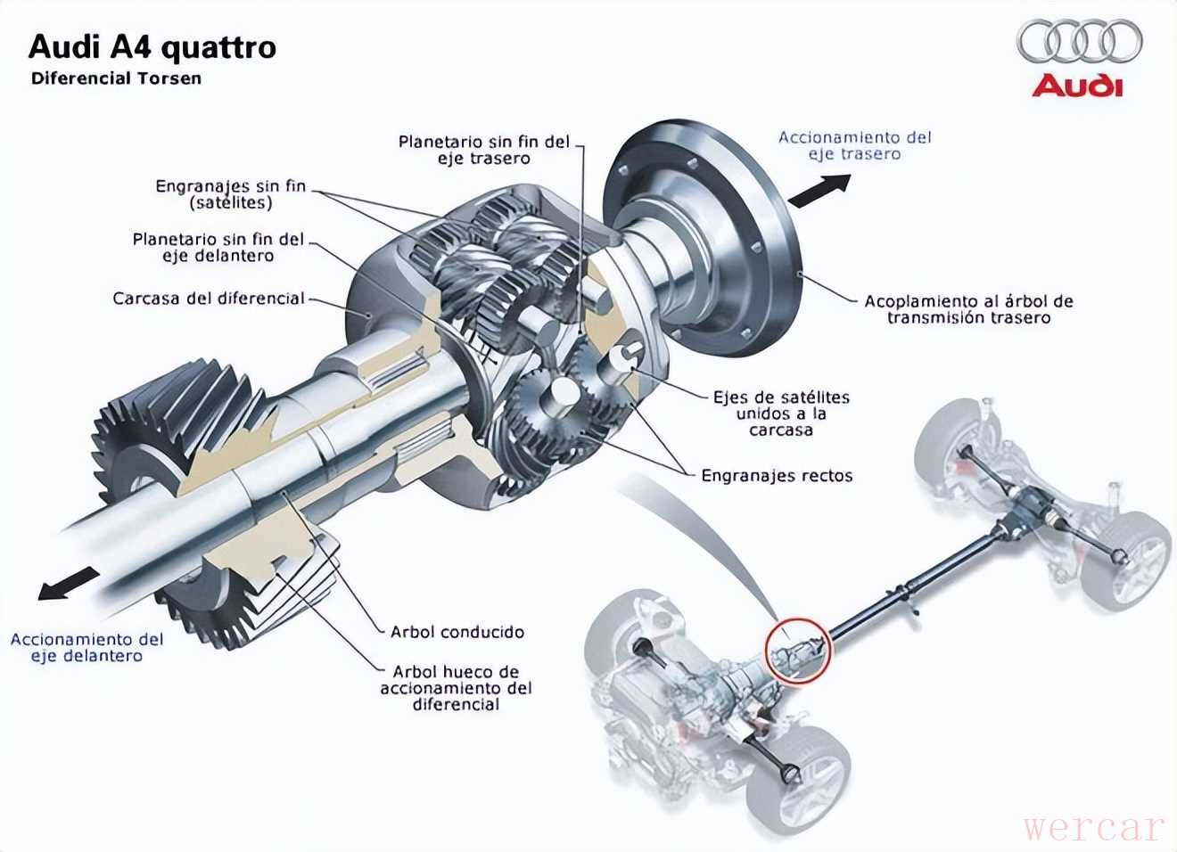 二、托森差速器为核心的全时四驱系统