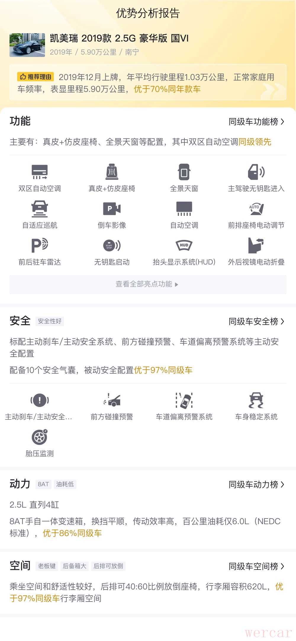 综上所述的新车含税价、用车成本、市场行情、优势分析、同款比价等数据仅供参考。在配置部分,因为二手车非标品,车辆可能会存在配置改装的情况,具体车况信息需要线下结合车辆实际情况进行综合参考。