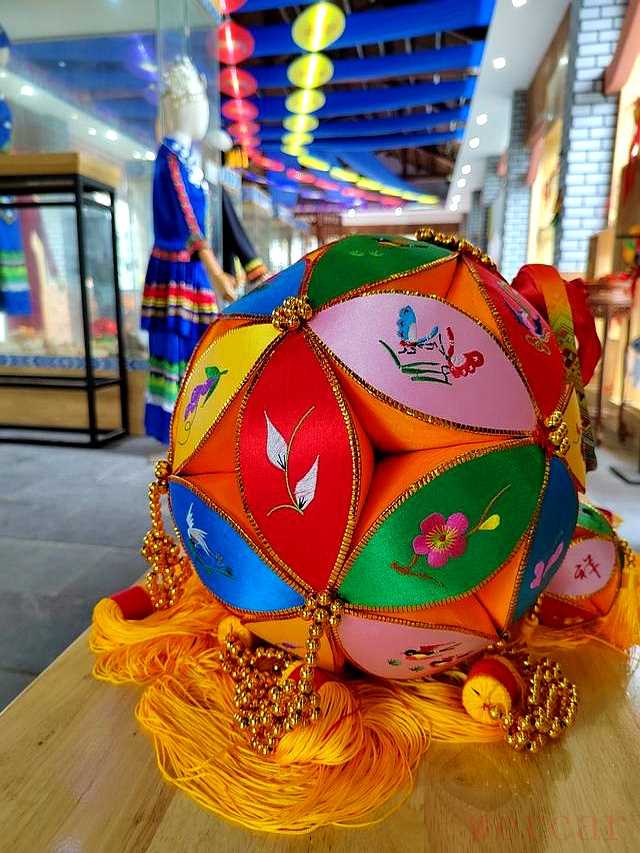 非遗工坊里,老太太一针一线绣绣球,绣完直接递给游客,不经过中间商。