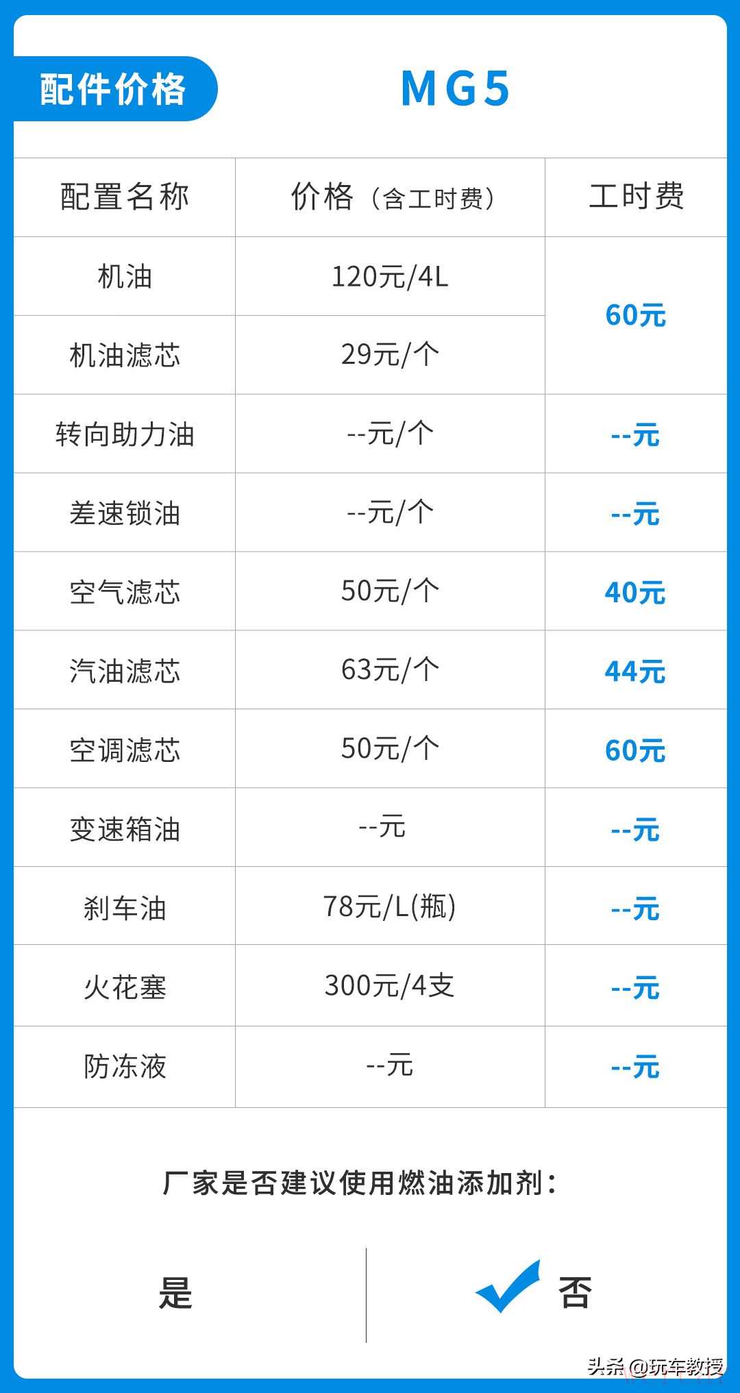 但好在MG5的保养配件都相对便宜,而且由于是5000公里一保,一般采用半合成机油就OK了,加上各项工时费也不高,整体算下来单次保养的花销并不多。