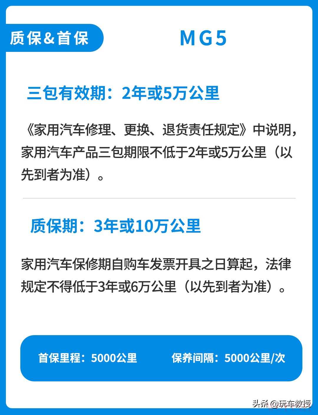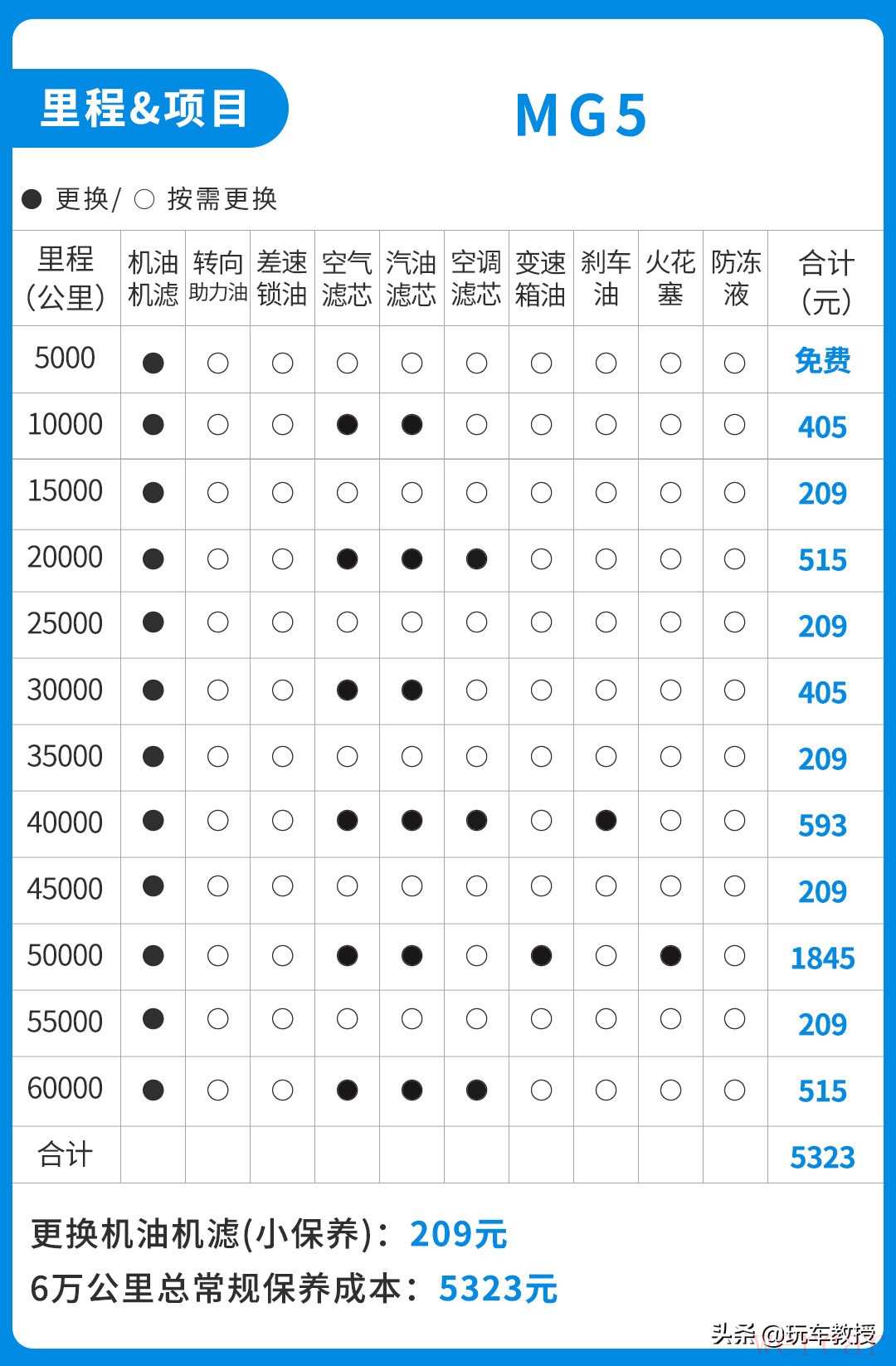 MG5的保养周期相对来说比较频繁,首保为5000公里,并且每5000公里一保,相较很多10000公里一保的车型确实会有更高的时间和人工成本支出。