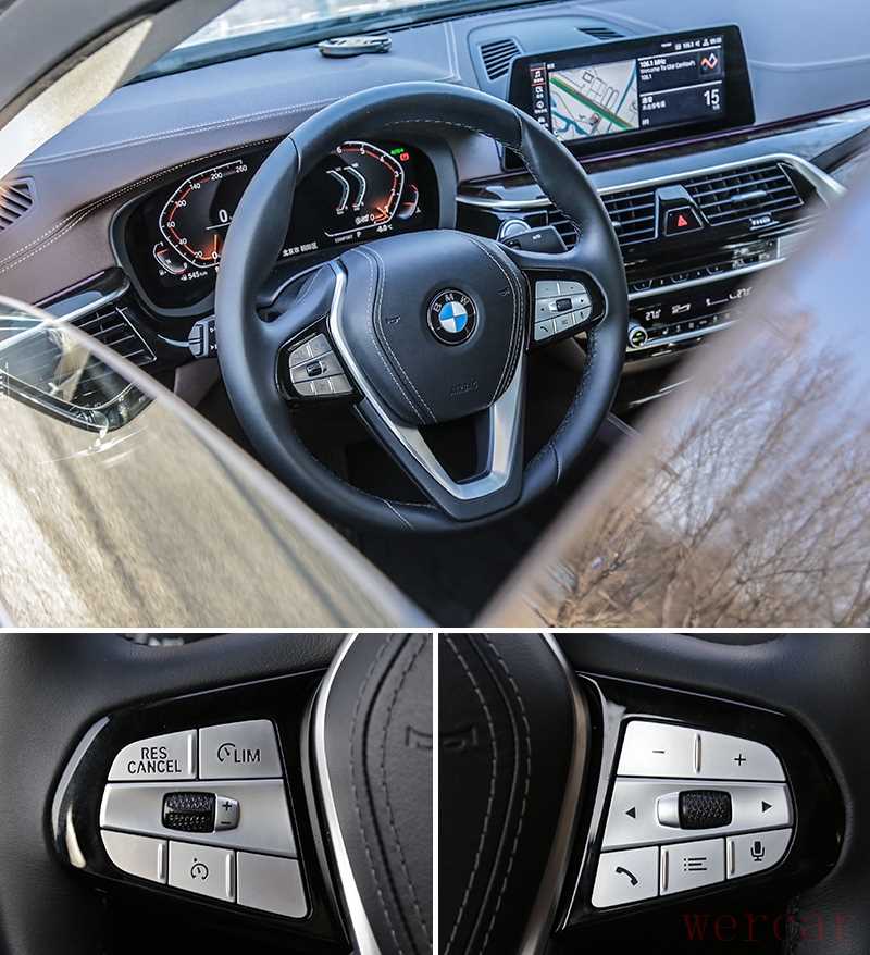 豪华设计套装版车型的方向盘并没有采用我们非常熟悉的“丁字裤”方向盘,同时没有配备换挡拨片,而且525Li车型不支持选装。不过好在全系标配电动方向盘调节。
