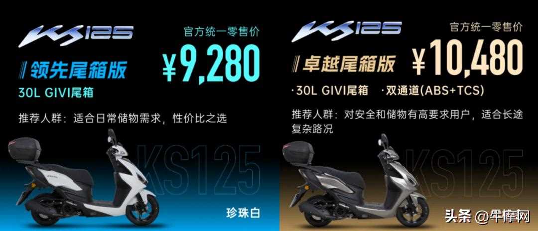 KS125作为踏板“专业户”光阳推出的又一款入门级实用型运动踏板,在保持了K系列的外观设计风格之外,还给予了诸多实用型配置(大储物空间)。在外观、配置和同级竞品相同的情况下有更亲民的售价,让入门成本得到了进一步降低。而在和竞品价格相同的情况下,又多了TCS、双通道ABS、半热熔轮胎等安全配置,让它更具竞争力。特别是首批用户发动机5年10万公里的超长质保,几乎是开了行业先河(去年很多厂家推出了5年5万公里质保,光阳直接玩了个更大的)。