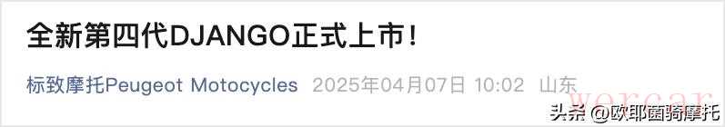 2025年4月7日,标致正式发布了第四代新款Django(姜戈)。