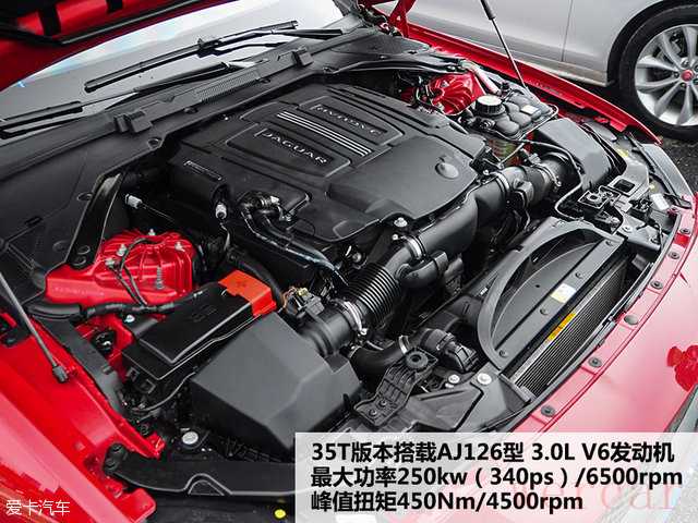 35T版本搭载代号AJ126型的3.0L V6发动机最大输出功率250kw(340ps)/6500rpm,峰值扭矩450Nm/4500rpm。