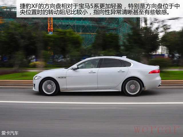 捷豹XF的方向盘相对于宝马5系更加轻盈,特别是方向盘位于中央位置时的转动阻尼比较小,指向性异常清晰甚至有些敏感,驾驶这台车身长度接近5米的中大型轿车穿梭在车流中,丝毫不会令人感到笨重,反而让人有一种在驾驶车身更小的捷豹XE的感觉。
