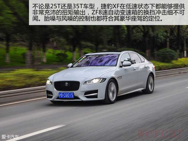 为了模拟“商务人士”的日常驾驶习惯,我们首先将驾驶模式设定在普通。不论是25T还是35T车型,捷豹XF在低速状态下都能够提供非常充沛的扭矩输出,ZF8速自动变速箱的换挡冲击细不可闻。胎噪与风噪的控制也都符合其豪华座驾的定位。