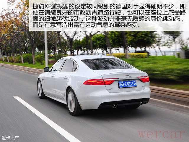 在起伏与颠簸更明显的路面状况下,捷豹XF也可以比较从容的处理,之所以使用“比较”二字,是因为捷豹XF并没有采用豪华轿车惯用的尽力抹平一切颠簸的处理手段,而是将这些颠簸转化得稍微柔和一些,这显然也是捷豹XF在运动与舒适之间进行的取舍。