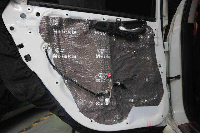 店里的技师细心的帮王先生贴上了车门隔音,施工细节确实不错。