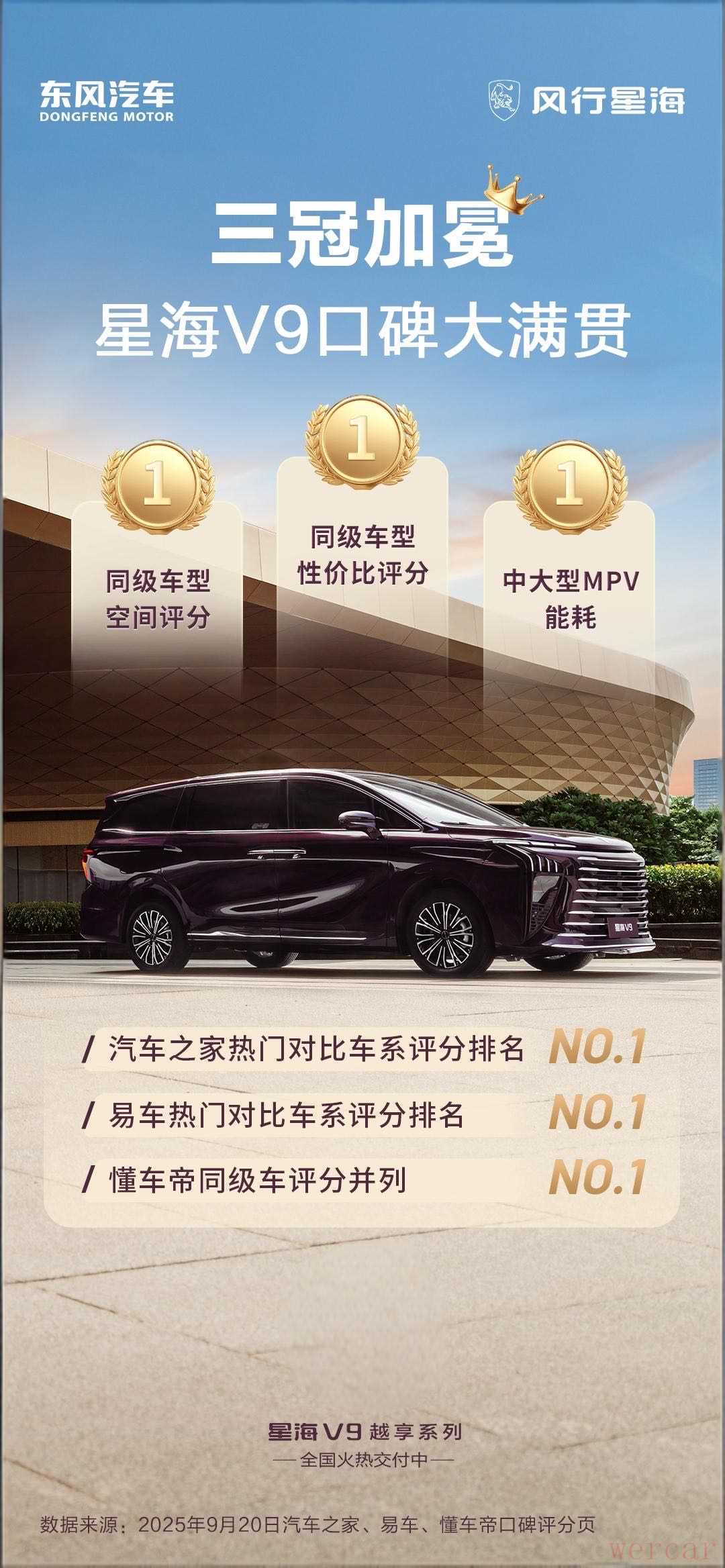 9月过万+三榜第一,星海V9书写传奇。东风柳汽黄金链,越享系列硬核+央企背书,致力豪华MPV进千家。未来,深耕MPV,回应期待。