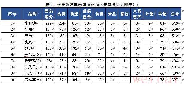 根据您提供的信息,中国消费者协会(中消协)发布的数据显示,比亚迪汽车在报告期内投诉量位居前列,并且其售后服务相关的投诉占比较高。