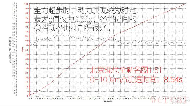 目前北方的气温已经逐渐回暖,测试当天气温为-6℃,关闭车辆的ESP系统并采用弹射方式全力起步,伴随着前轮的短暂打滑,车身以较为平稳的姿态加速,7速双离合的换挡顿挫抑制得较为合理,各挡位间的配合也比较融洽,全程都能表现出比较线性的感受,最终测得0-100km/h加速时间为8.54s,这个加速成绩在同级车型中属于一个主流的水平。