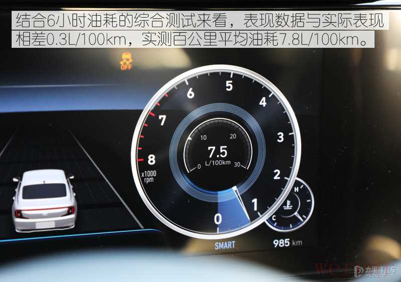 在一整天的测试中,这辆全新名图在加油至跳枪后共计行驶里程为114km,因加油站规定的缘故,我们并未拍摄实测油耗的图片。在行驶114km后,表现百公里油耗为7.5L/100km,当我们再次加油至跳枪后,算得百公里油耗为7.8L/100km,此次测试涵盖了城市快速路及早晚高峰路段以及环路驾驶,对于一款1.5T车型来说,这样的油耗表现属于正常水平。