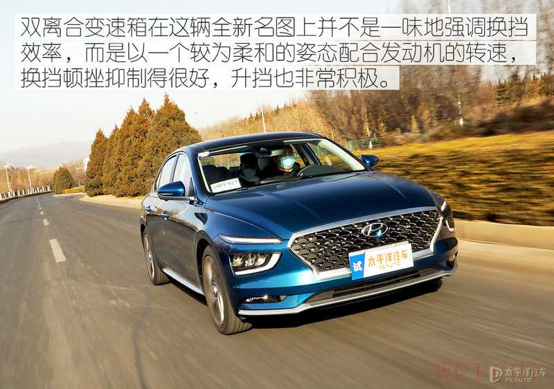 在实际体验中,这台1.5T发动机所带来的加速表现较为活泼,即便全新名图还是以舒适性当做其特点而打造,但相比老款车型的动力表现还是要爽快一些,双离合的换挡时机较为靠前,升挡非常积极,这样一来就减轻了高转速换挡所带来的顿挫感,这对于一款家用车而言是至关重要的,而全新名图在这点上做得的确不错。