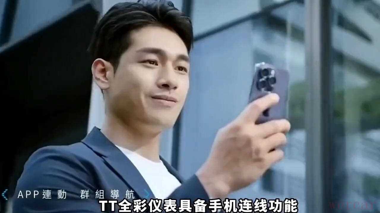 ·配置:配备LED全车光源,大灯透过右手把开关能切换两种色温,并且具备倾角感测器。当侦测到有下倾角过弯时,会自动开启鱼眼头灯内的转向辅助灯具。TT全彩仪表具备手机连线功能,可以控制音乐播放、显示来电、信息通知,以及与导航王合作的导航显示功能。此外还有USB充电口、无钥匙启动、TC牵引力控制系统、23升座筒空间等。