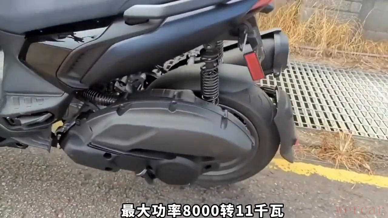 ·引擎:动力部分也并不陌生,采用155CC水冷单缸发动机,最大功率8000转11千瓦,峰值扭矩6500转14牛米。坐垫高度815毫米,油箱容积6.1升,油耗2.27升每百公里,续航里程260公里,整备质量132公斤。