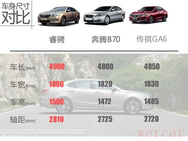 长安睿骋智享版作为2016款长安睿骋的顶配版本车型,其车身尺寸相比现款睿骋并未发生任何改变。车身的长、宽、高依然分别为4900mm/1860mm/1500mm,轴距2810mm;不过这一尺寸在同级别的竞品车型面前丝毫不落下风,基本上依旧能够完胜竞争对手,也算是长安睿骋继续坐拥中国品牌中级车元老位置的底气所在。