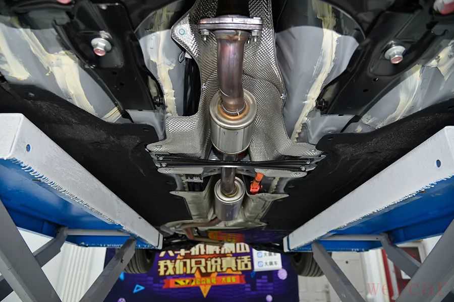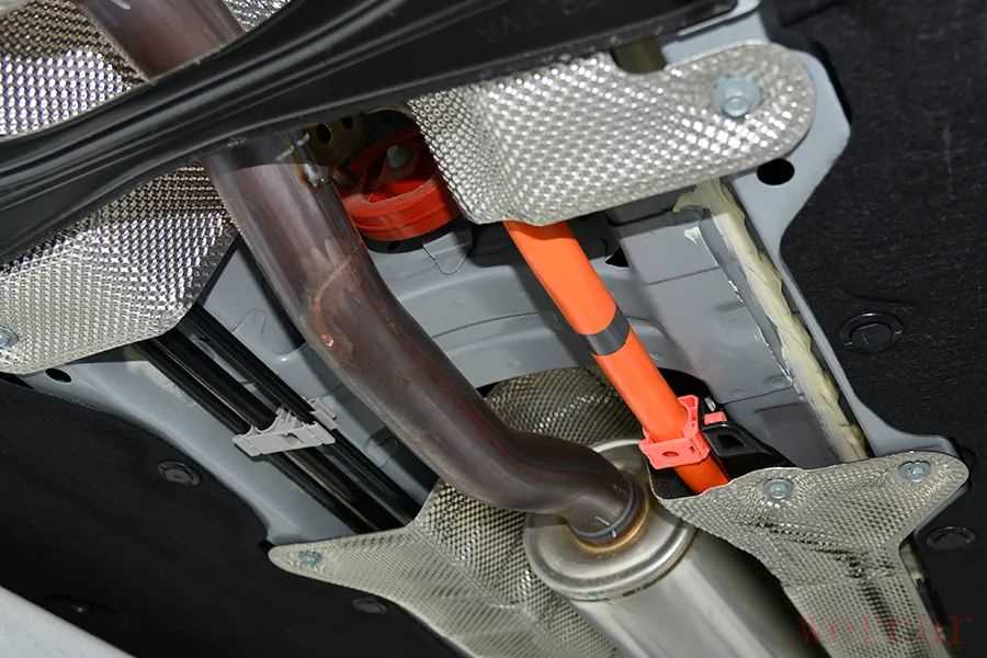 虽然排气管从前到后都有隔热措施,但并不完整。刹车管线和高压输电线都有一部分暴露在外,且距离排气管相当近,还没有隔热措施。