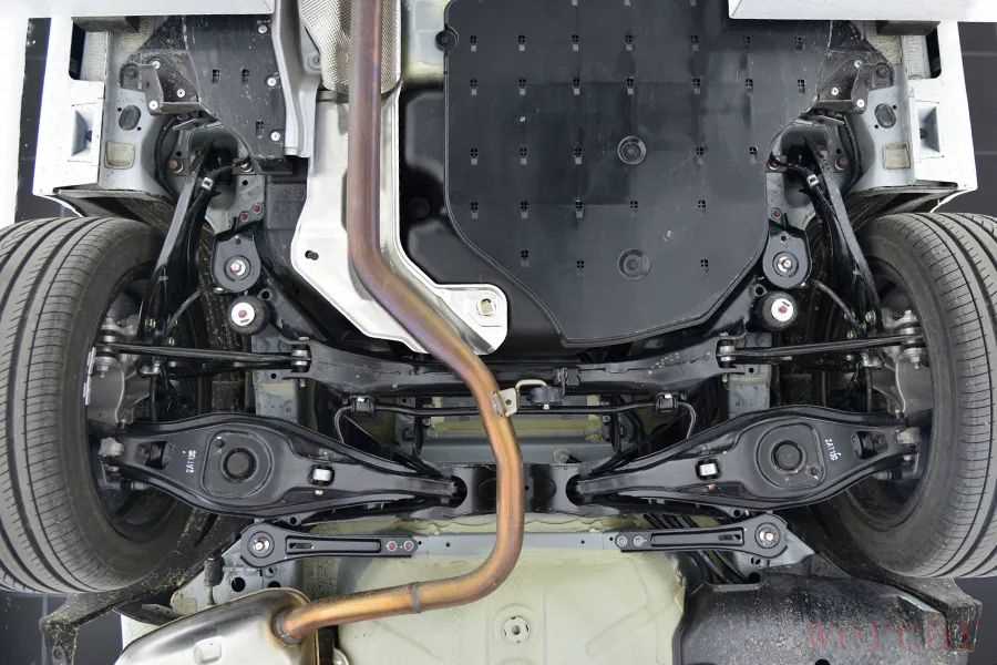 前副车架为双层冲压钢板H形副车架,与老款没什么差别。