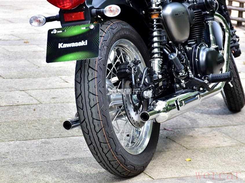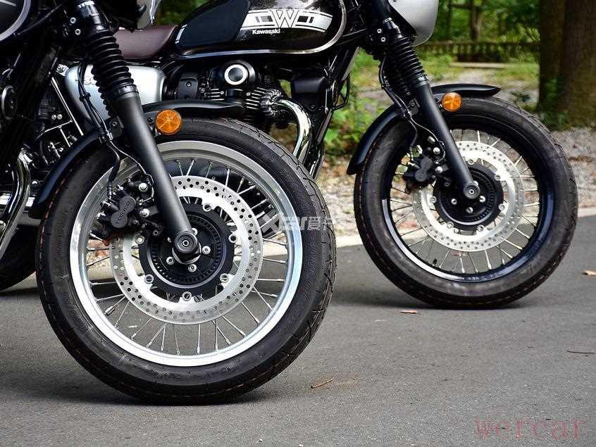 为了区分两款车型,W800 Street的轮圈为铝合金原色,而W800 Cafe则是黑色喷涂。除此之外,新款W800的轮圈也经过情况化处理,有利于提升车辆的操控性。