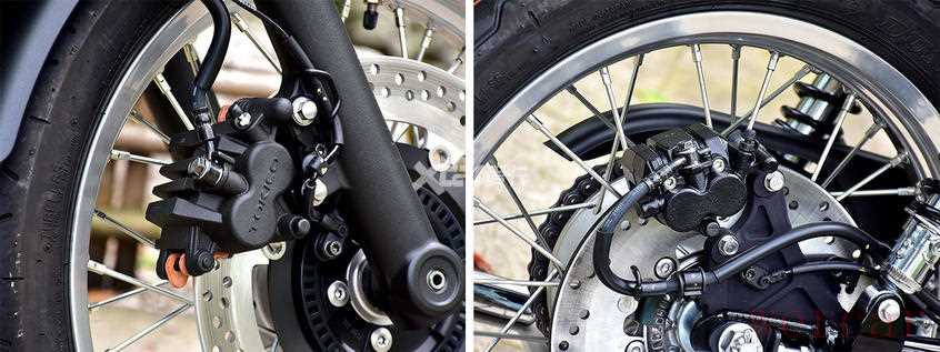 在刹车系统及安全配置上,两款新车均标配ABS系统,并将老款车型上的后鼓刹升级为碟刹,前刹车盘直径也有所增加,达到了320mm,与之相匹配的是来自东机工的单向双活塞卡钳。