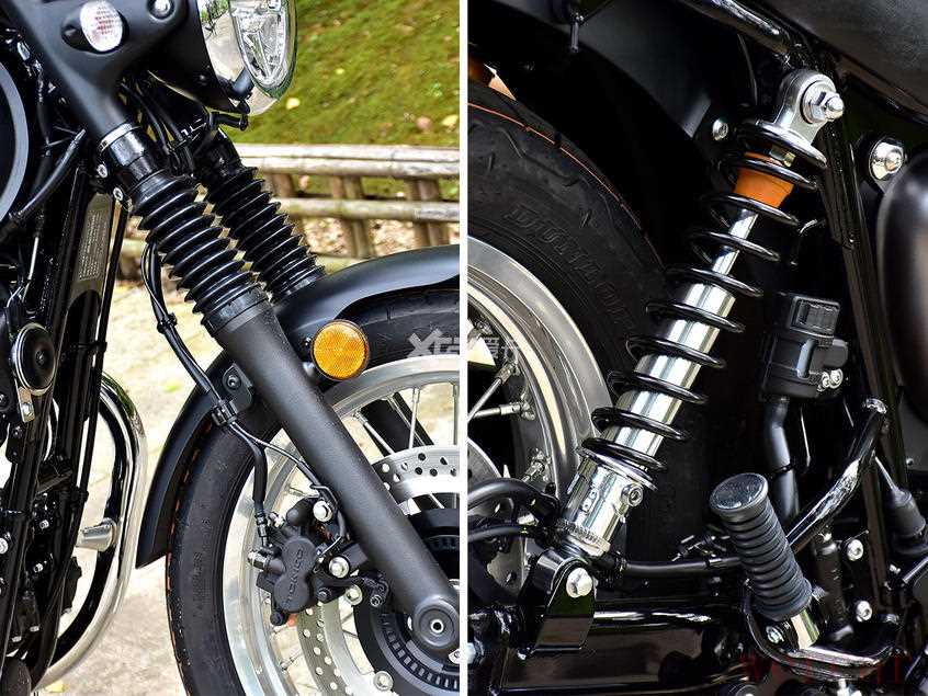 在悬挂系统方面,新W800与上代W800发生了细微变化,前正立式前叉直径由原来的39mm提升至41mm,后双筒油压减震行程也有所增加,前后减震调校与老款车型略有差异。