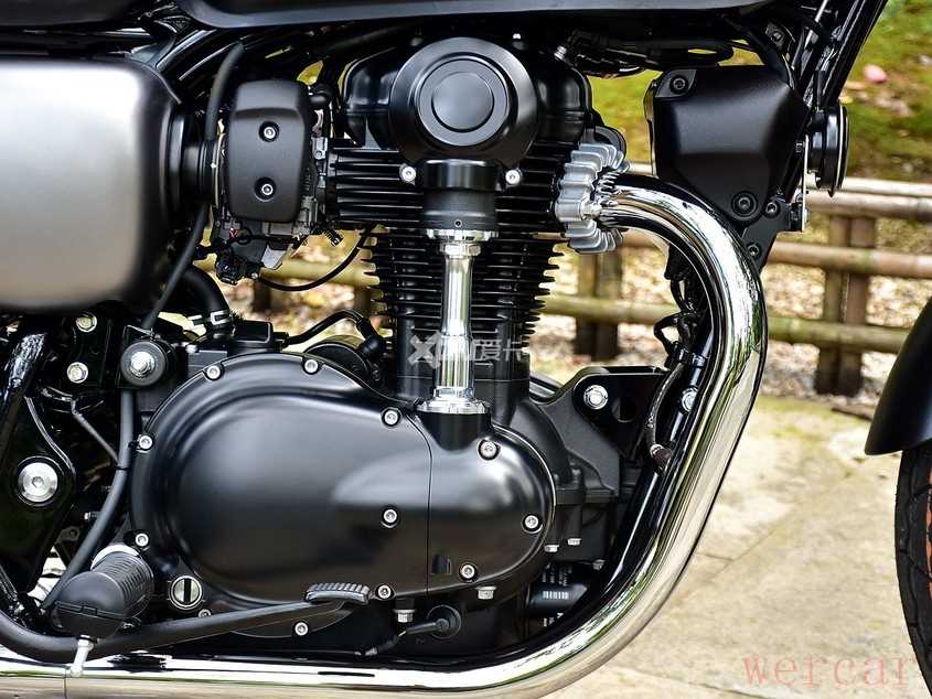 在动力系统的上,新W800依旧搭载的是那台773cc SOHC双缸发动机,而与之相配的同样是5速变速器,新增加的滑动离合器也让驾驶更加流畅;这款发动机的最大功率为35kW(48Ps)/6000rpm,相比上代车型功率有明显提升;W800系列是目前川崎市售的唯一采用顶杆结构的车型,这也让W800系列的声浪颇为独特。