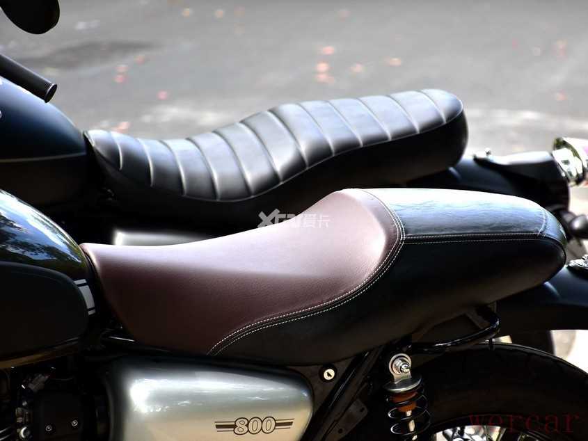 W800 Street与W800 Cafe采用了完全不同的座椅风格设计,前者是带有手工缝制感的一体式座垫,后者则是带有小驼峰的Café racer风格座垫。
