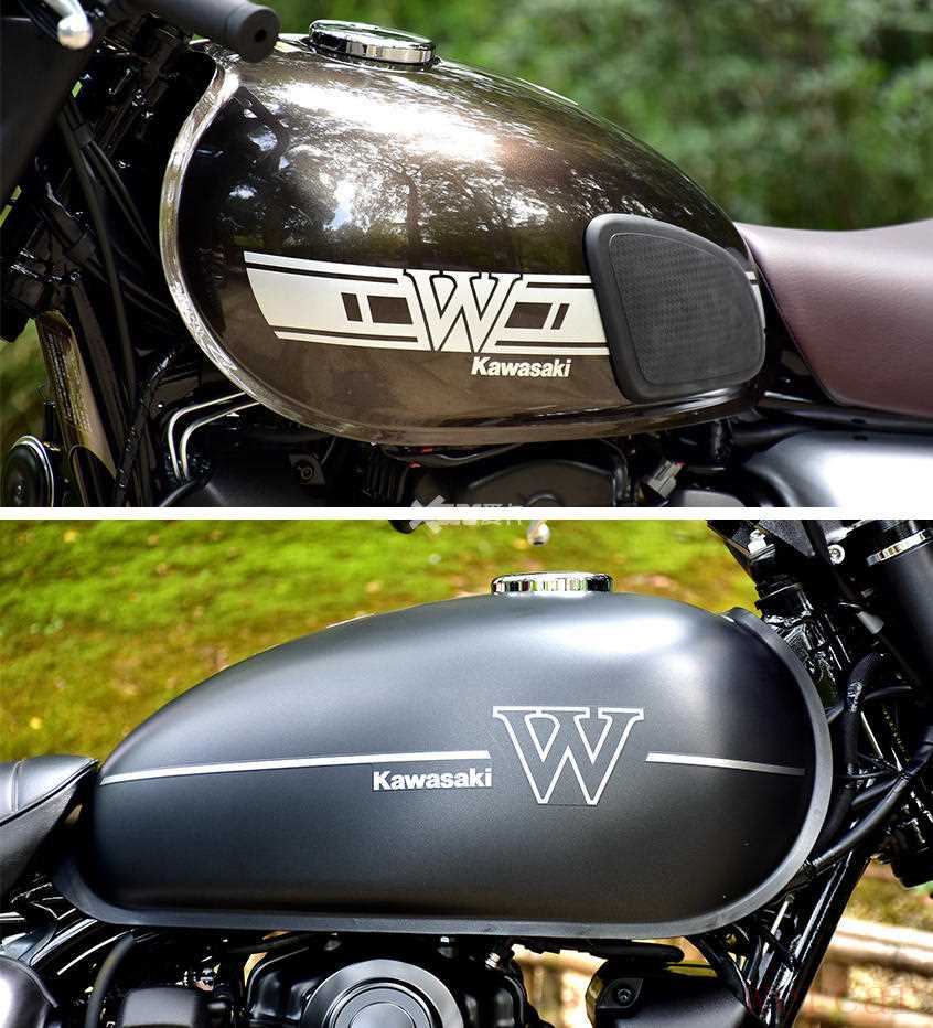两款车的油箱造型相同,且油箱容量均为15L;但就油箱拉花风格来看,W800 Cafe不但油箱拉花更具特点,油箱还单独设置了橡胶防滑贴。