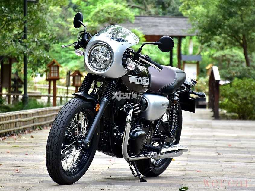 而W800 Cafe则采用了更具竞技风格的伪分离式车把,不仅位置更加低矮,也更符合其车型定位,不负Café racer之名。