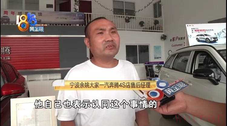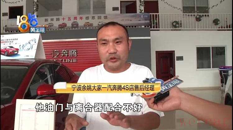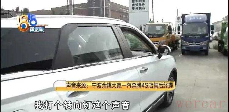 宁波余姚大家一汽奔腾4S店售后经理:“我开就没有(异响),他就是油门与离合器配合不好,离合器放得快,油门又没加上去,我跟他到路上试车,我打个转向灯这个声音,他说这个车子有问题,他说这个声音要我清除,我说每辆车子都有这个提示音,他要我把这个声音清除掉,那你叫我怎么办?”