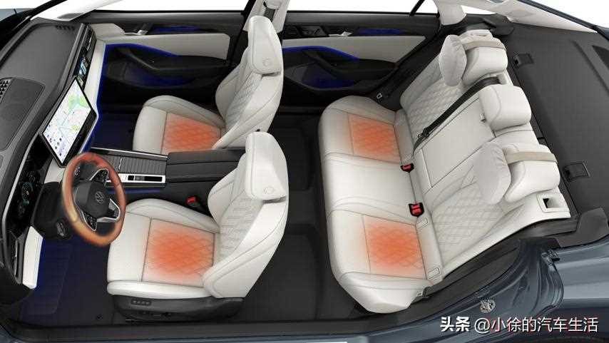 舒适领航,谁说大众迈腾简配?或许有人认为迈腾商务属性更加突出,在舒适性方面或许差了一点,不过小徐认为,说全新一代迈腾舒适性差我是不同意的。这一次的全新一代迈腾在空间舒适布局和配置方面都相当丰富。首先长达2871mm的轴距保证了车内空间的舒适空间,其次,在座椅的材质方面高配版本采用的是Micro - fiber 科技超纤打孔皮质,触感柔软又舒适,还兼顾了透气性。