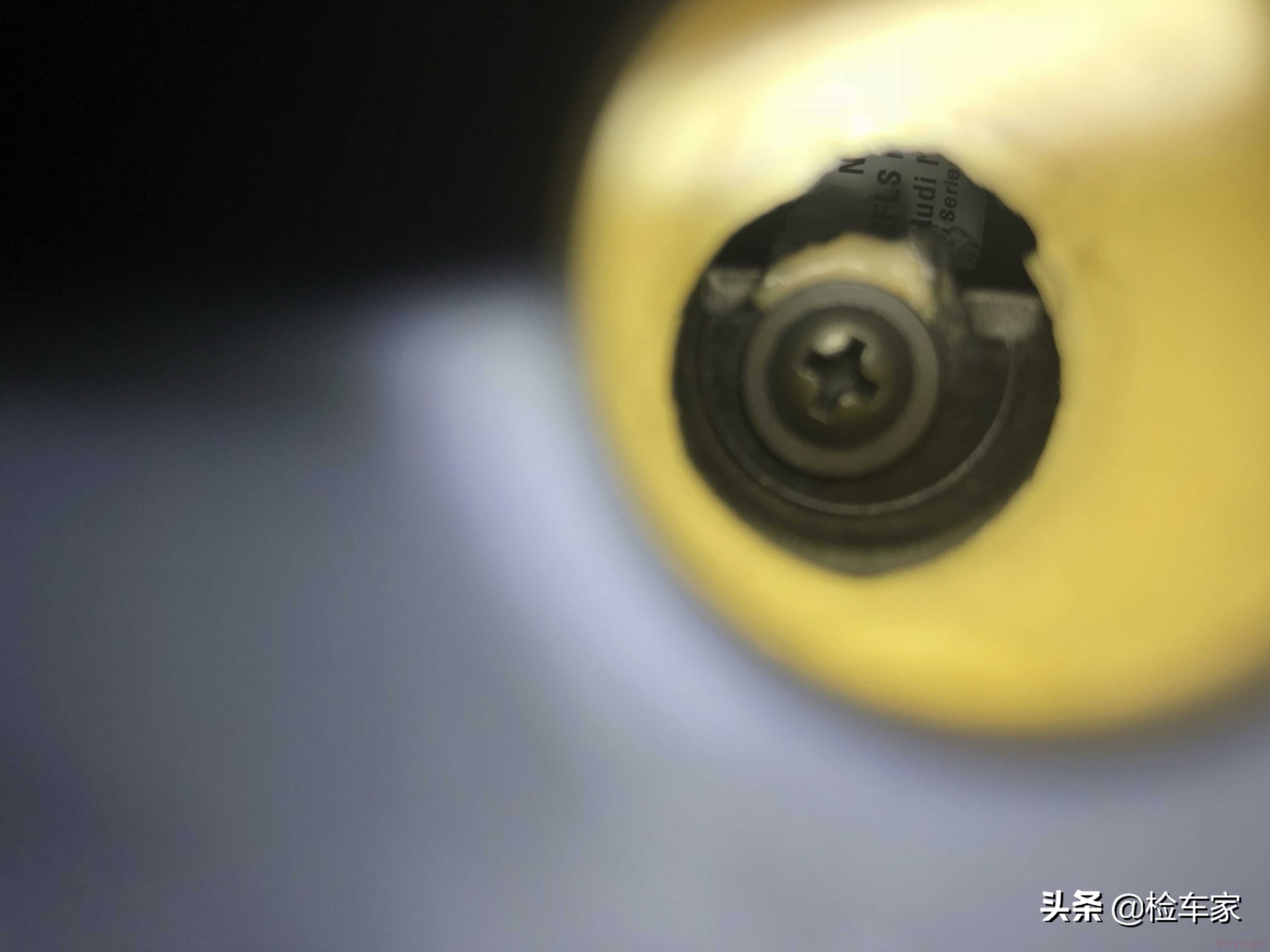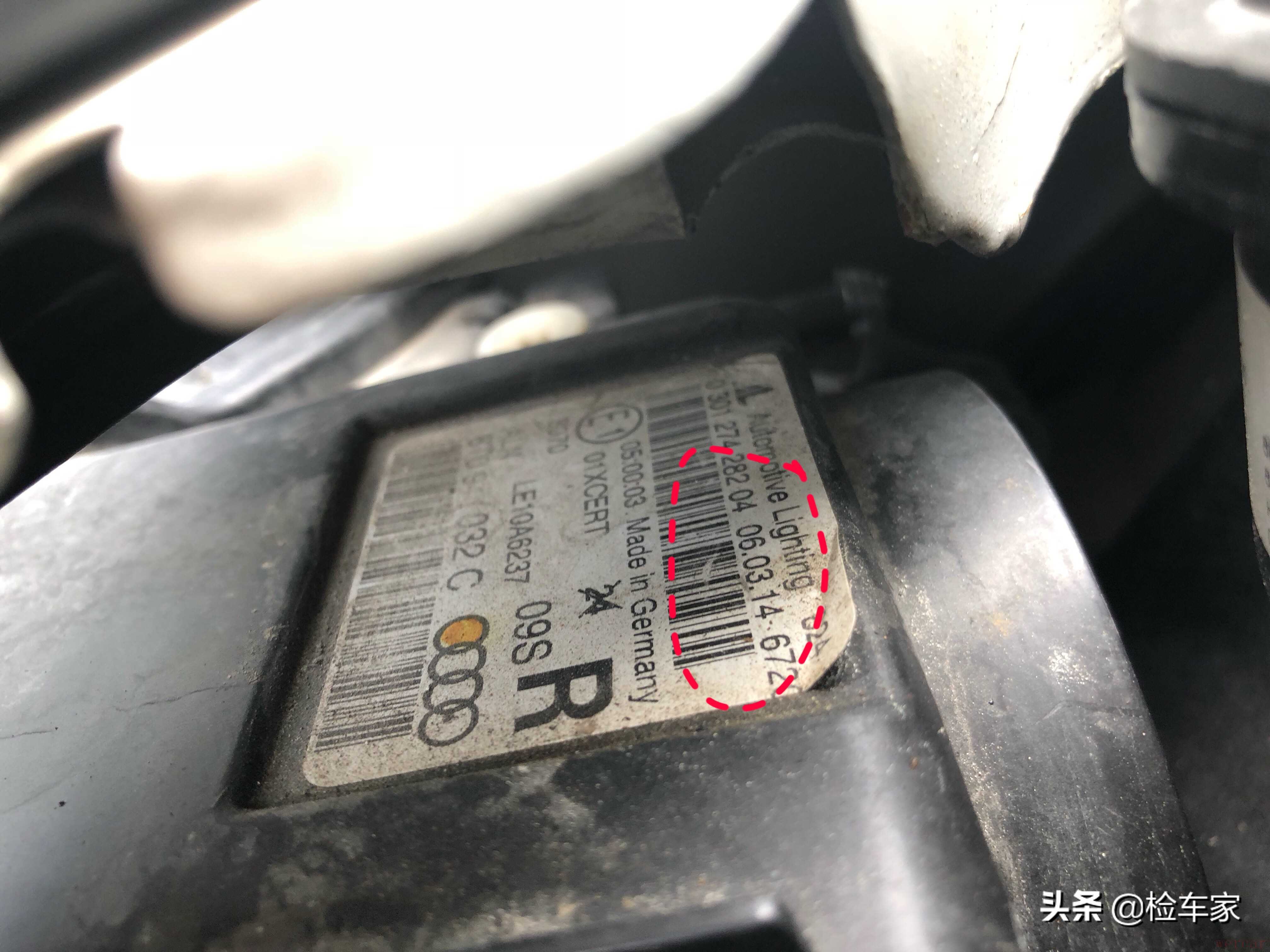 顺便也看了下左侧大灯日期,咦~奇了怪了,大灯日期与原车日期相符,并没有异常,这就是之前小宝跟大家说的那样,光看大灯标签是没有用的,因为这只是纸质标签,是可以后期贴上去的,这不,这车标签就是后期贴上去的。旁边撕动的痕迹都在~怎么有点掩耳盗铃的感觉。哈哈~
