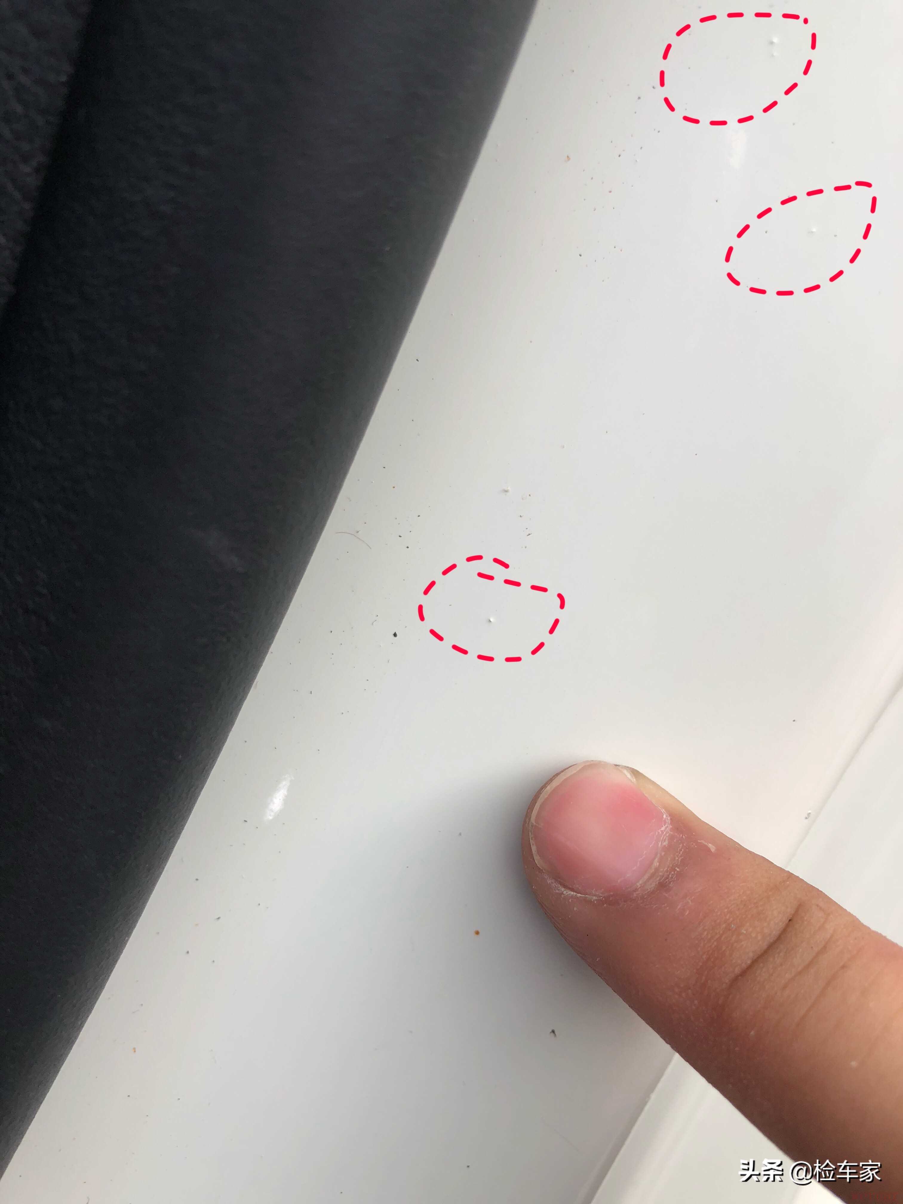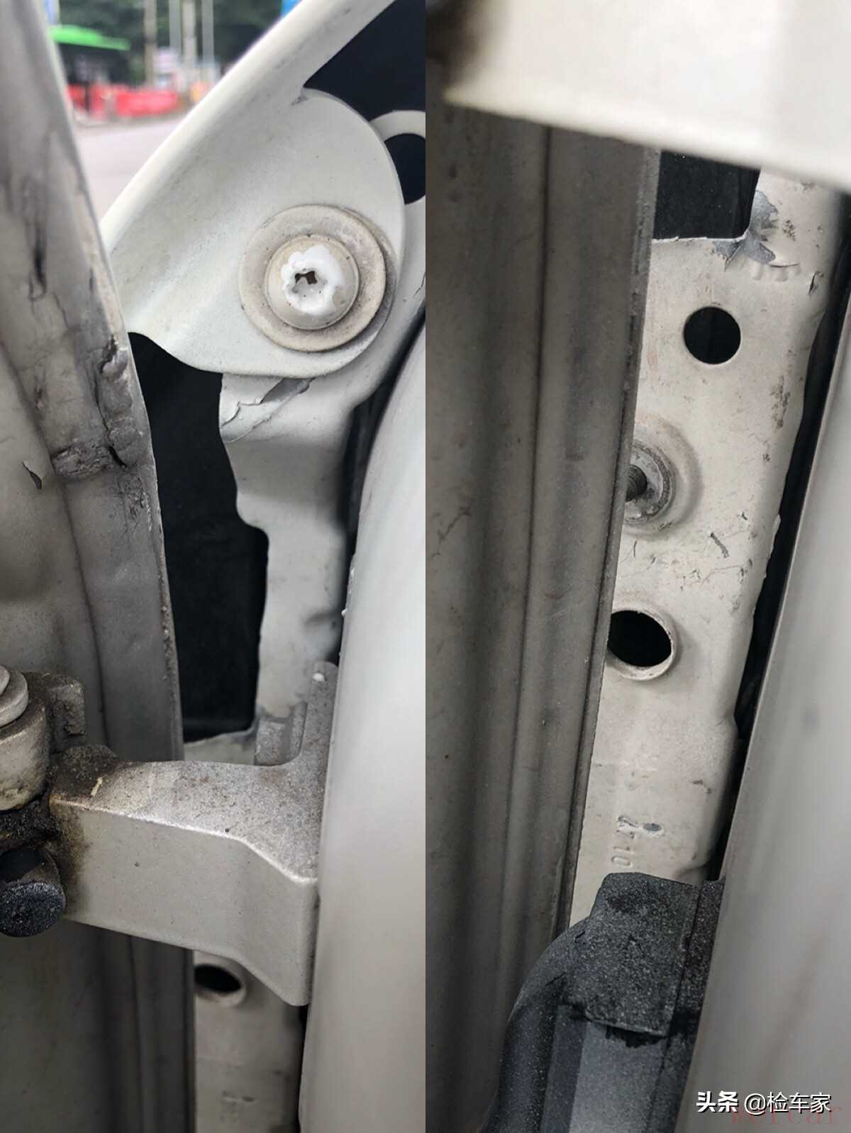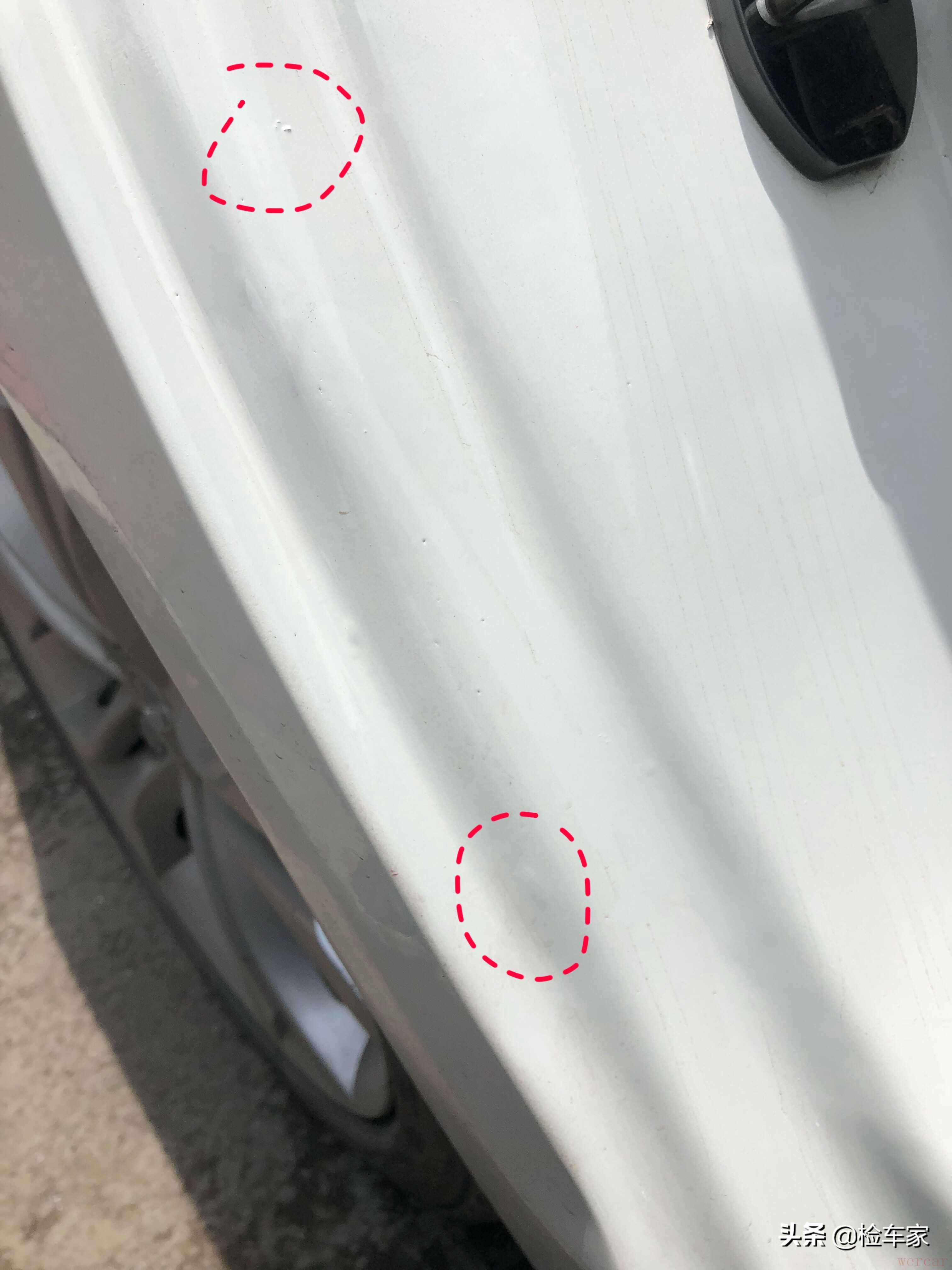 左后门也有钣金修复痕迹,而且钣金范围还不小,我此时心想:这车到底经历了什么?