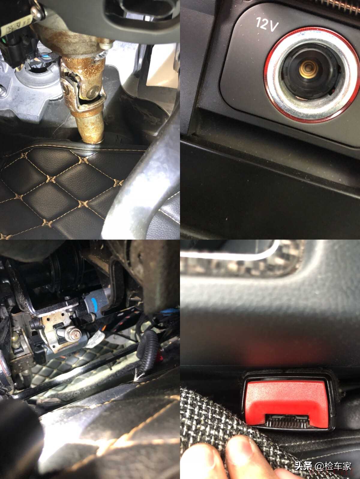 检测内饰发现点烟器内部并没有发现生锈的痕迹,座椅下部线束规整无泥沙,安全带卡扣内部均没有发现泥沙和水泡的痕迹。