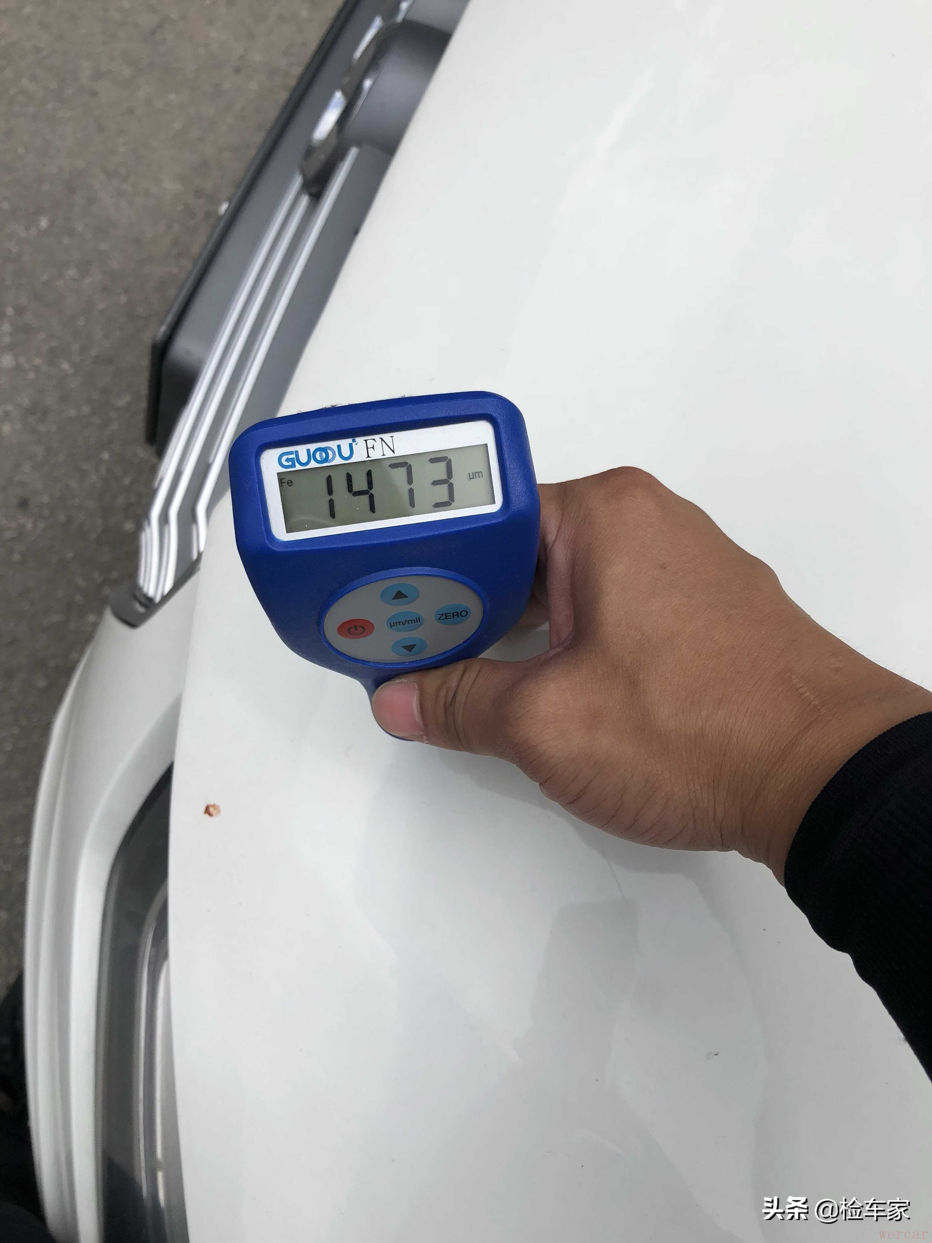 老规矩首先从机盖漆面开始检测,机盖数值高达1473um,看样子像卖家说的那样,左侧有故事,具体多大待会打开发动机舱盖分析~