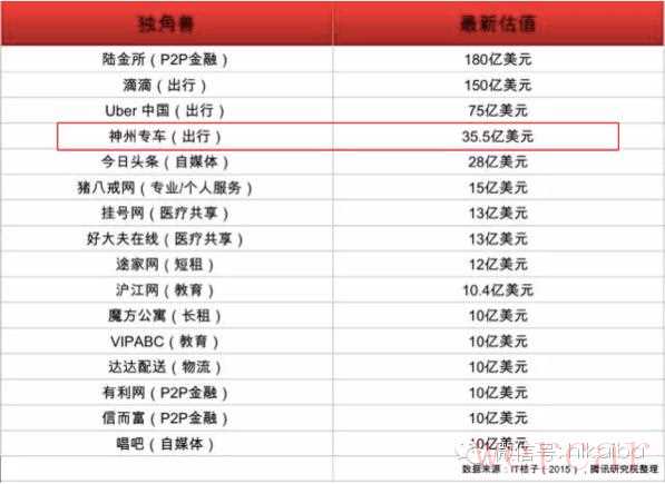 这份报告里列举了分享经济独角兽企业,滴滴、Uber、神州专车均在列。