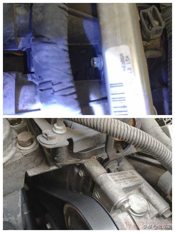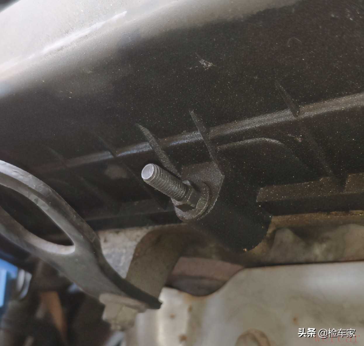 可以看到发动机固定机脚螺丝存在更换,不过随着车龄的增长,像这样的橡胶件更换对车辆正常行驶是有好处的。