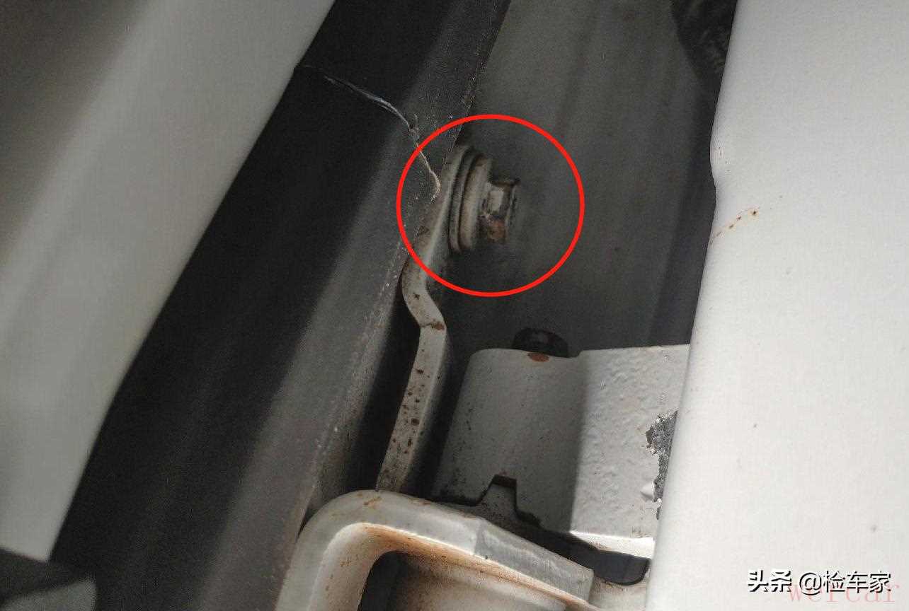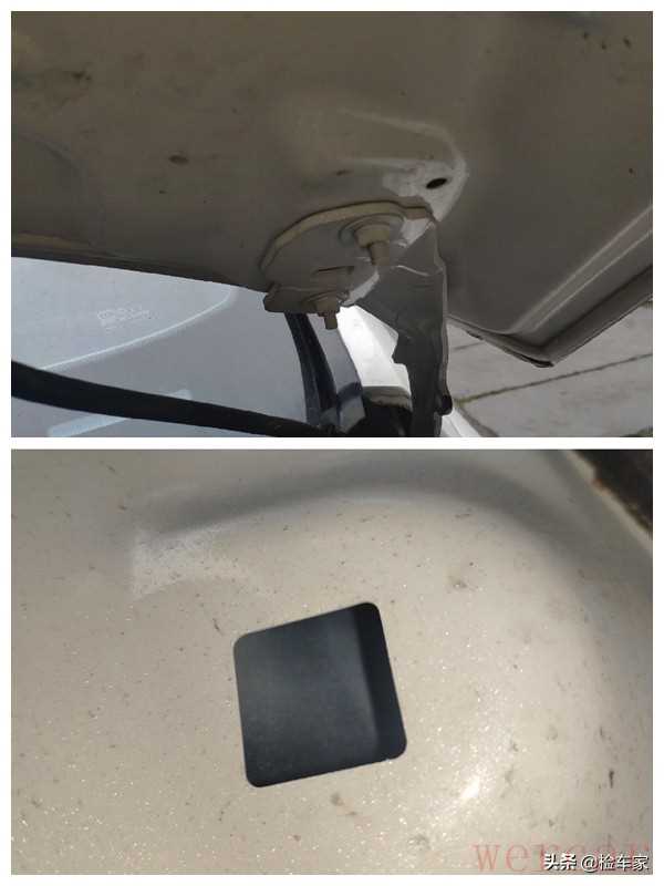 机舱部分首先检查了左右两边的机盖固定螺丝,看着没问题,其实是经过伪装处理了,和左、右前叶子板的问题是一样的,内侧漆面都为黑色,属于副厂制品,简单地说就是更换过。