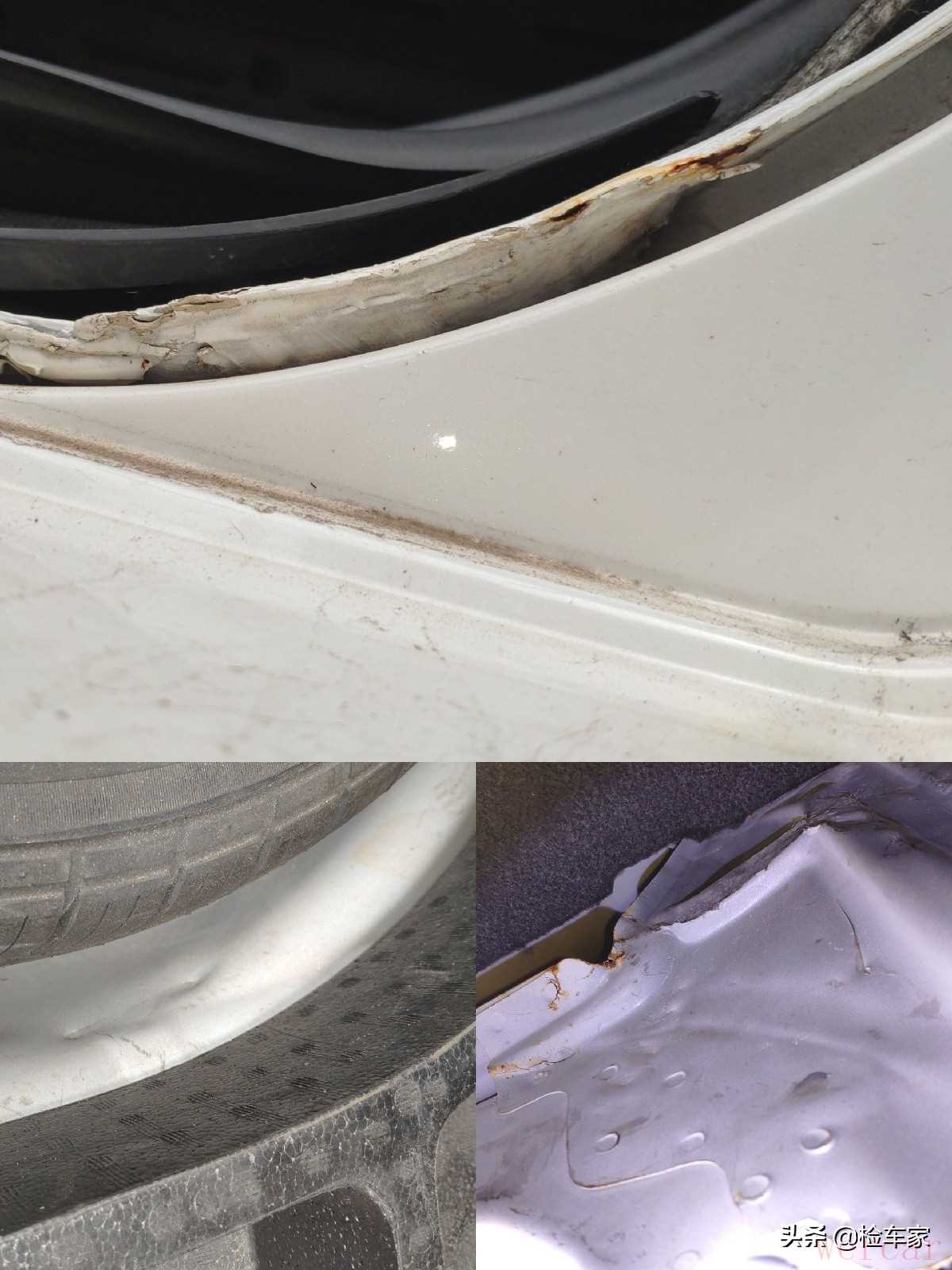 就是右后叶子板导水槽,对比左边能看到内侧胶线已经完全没有了,且腻子都有开裂的情况,估计右后叶子板是存在切割焊接了。