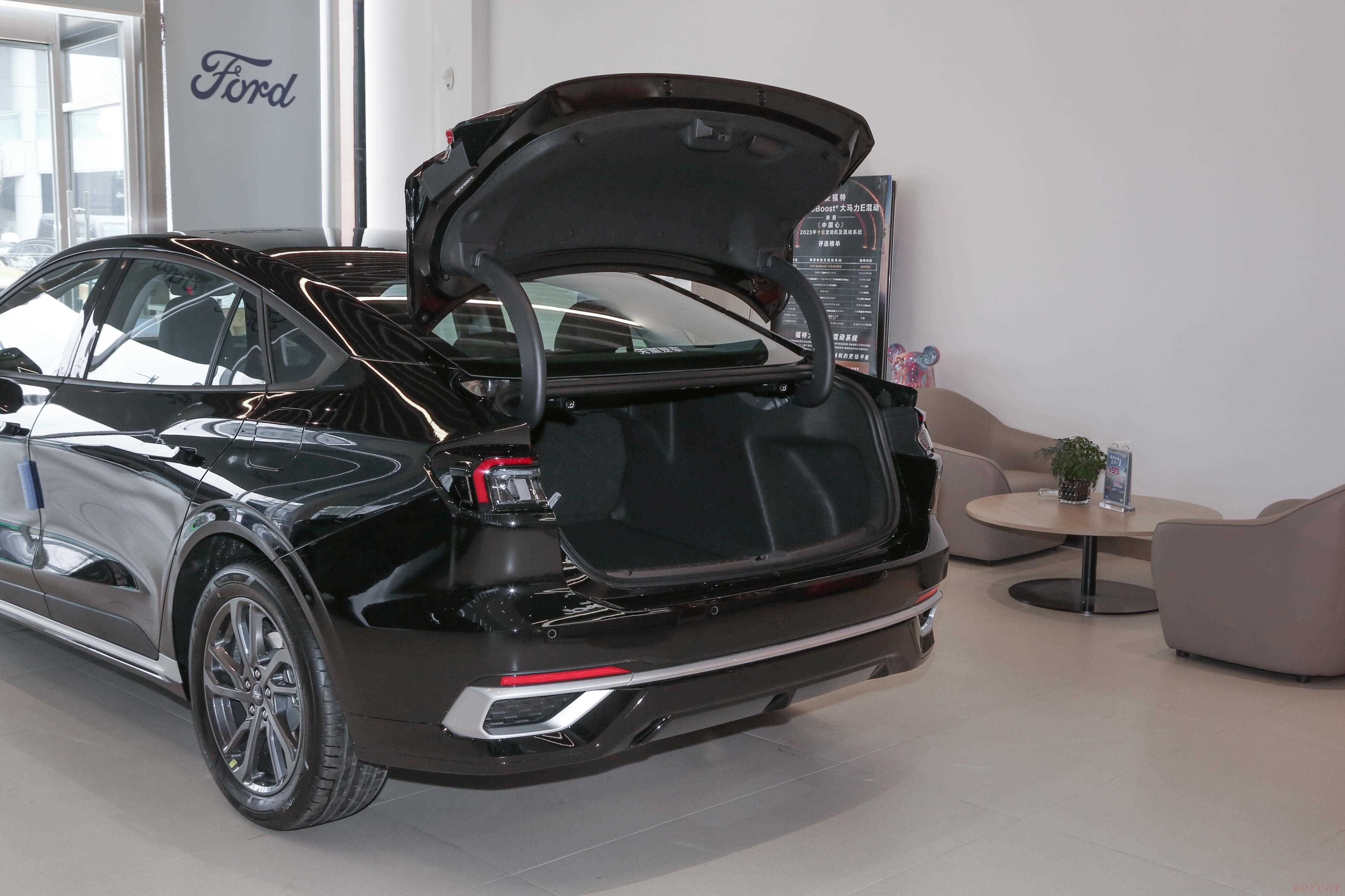 外观方面,蒙迪欧的设计真的很对年轻人的胃口,运动感十足,像个 “潮男”。多边形中网面积很大,底部是主动闭合式进气格栅,中间用封闭式饰板隔开,两侧的 LED 大灯斜向下,看着特别有气势。侧面是溜背造型,还加了隐藏式门把手,风阻更低,也更显年轻。18 英寸运动轮毂是黑色的,配上黑化的车窗饰条,运动感直接拉满。尾部是贯穿式尾灯,里面的光源像 “闪电” 一样,下面还有英文标识,加了个小尾翼,看着特别帅。
