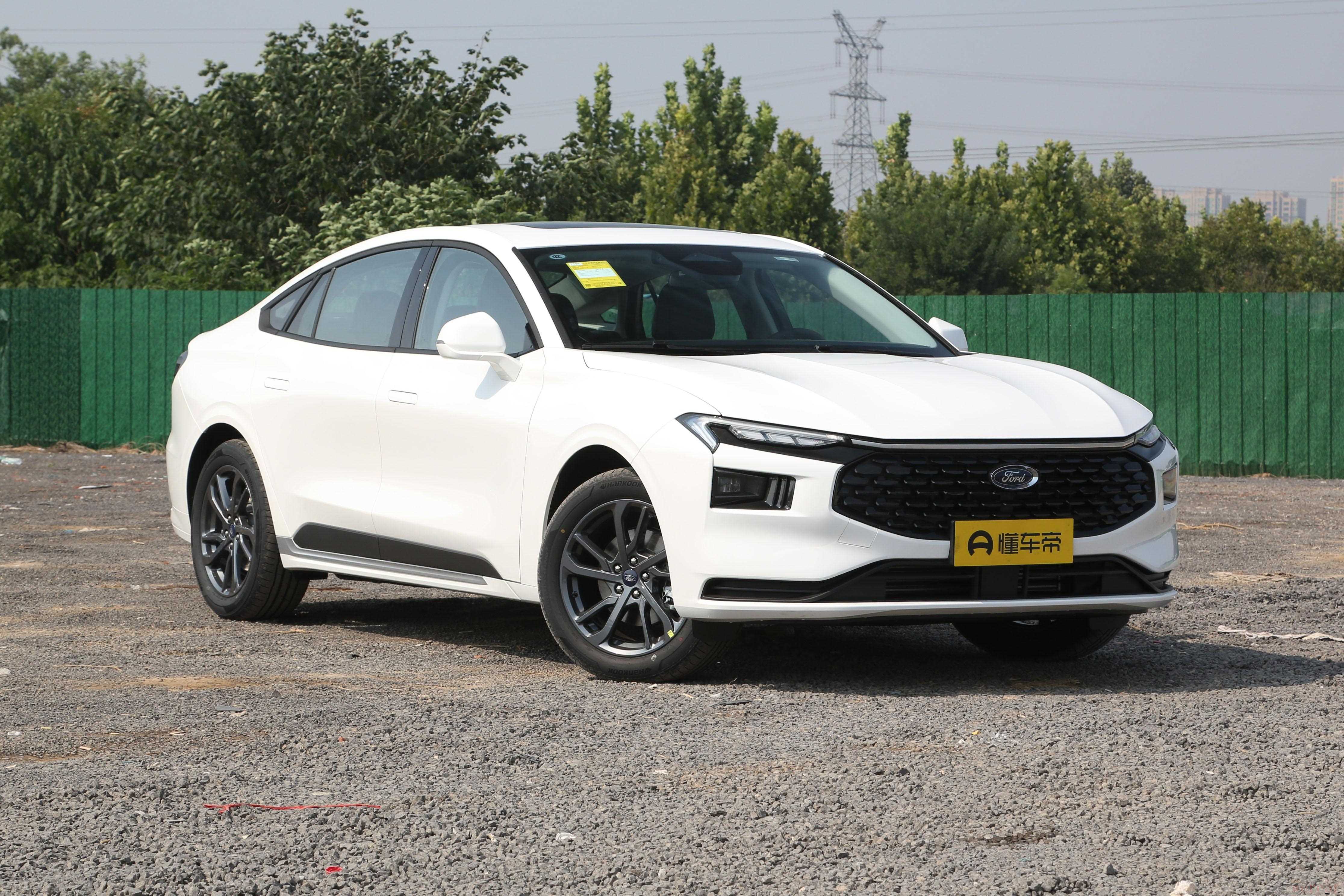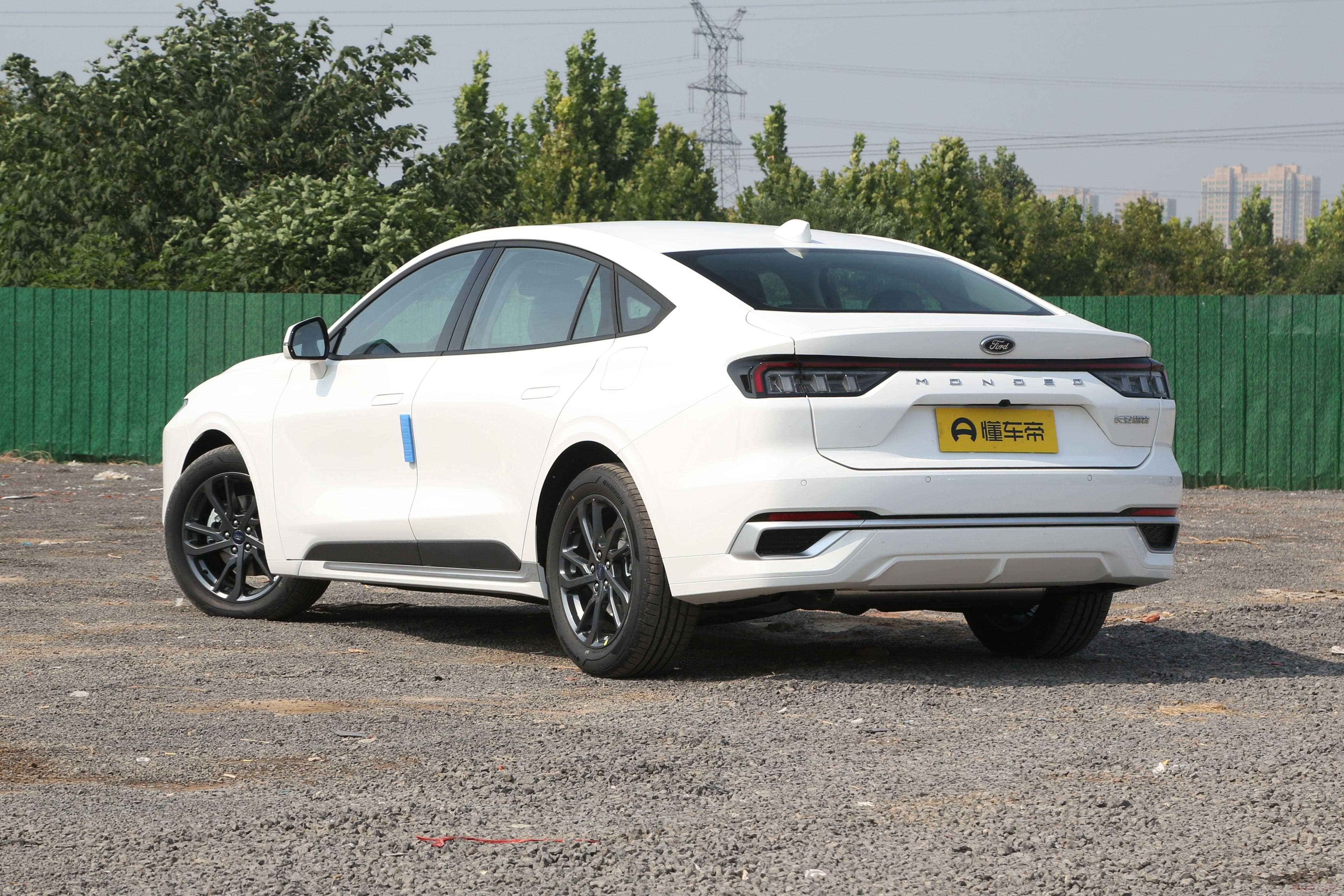 蒙迪欧外观像 “潮男”,运动感拉满。多边形中网面积大,底部是主动闭合式进气格栅,能根据发动机温度自动开关,帮发动机快速升温还能降风阻;中间用封闭式饰板隔开,很有层次感;两侧 LED 大灯斜向下,造型犀利,看着凶悍,晚上点亮后亮度也够。车身侧面是溜背设计,车顶从 B 柱开始慢慢下倾,动感十足;还配了隐藏式门把手,解锁时才弹出来,降风阻又显时尚。18 英寸黑色运动轮毂,加黑化车窗饰条,运动氛围更浓;车尾是贯穿式尾灯,里面的光源像 “闪电”,晚上辨识度高,还有英文标识和小尾翼,整体看着帅气,很受年轻人喜欢。