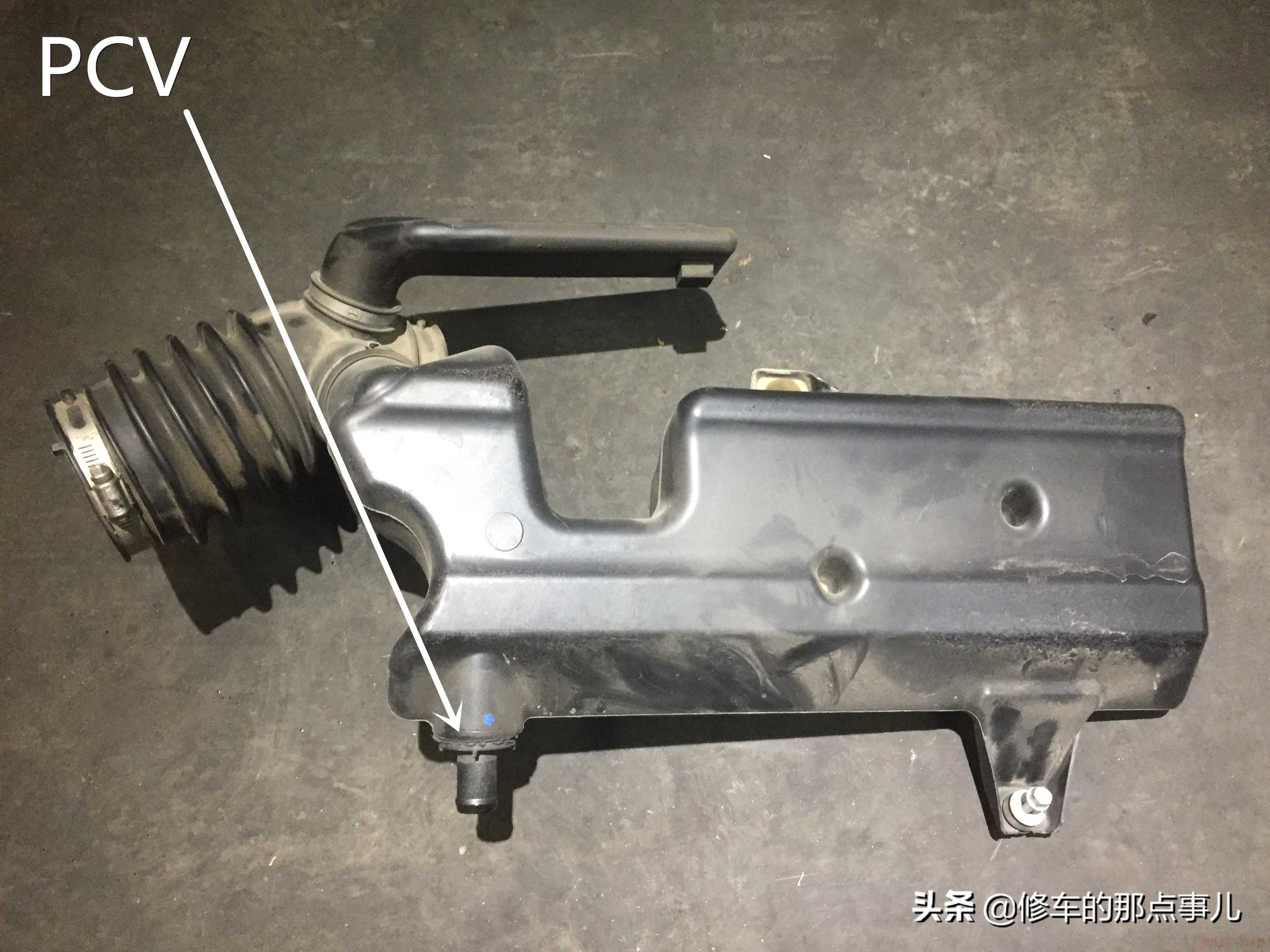 在节气门和空气滤芯之间一个进气的谐振腔,上面集成了PCV阀(曲轴箱强制通风)。造型是不是感觉很怪异,其实都有它存在的道理。