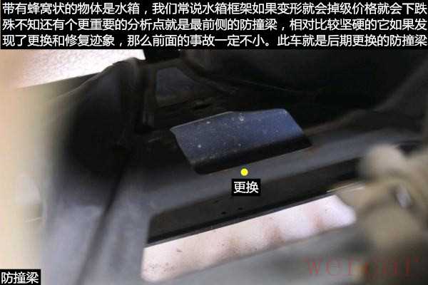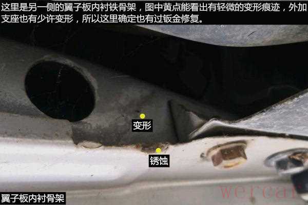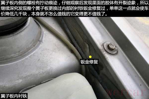 这里的变形不够明显,但是这里也需要作为必看点,因为不可更换的结构变形是对车价有影响的。