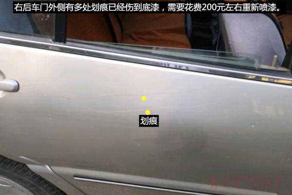 最后一处需要重新喷漆的地方右后门,到这里这台车外部需要整备的地方已经全部观察完毕,剩下的就是看内饰是否符合实际磨损了。