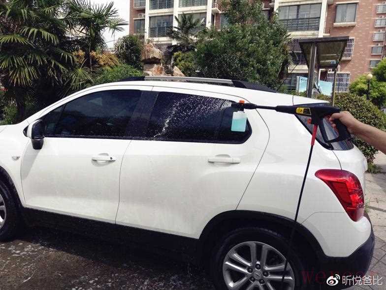 洗车之前首先要选择一个合适的场地,以不打扰邻居们为最宜。此外,在清洗的过程中也要注意附近的熊孩子们,因为水枪的出水压力很大。洗车机自带的10米出水管长度完全够用,完全可以环绕车身一周。