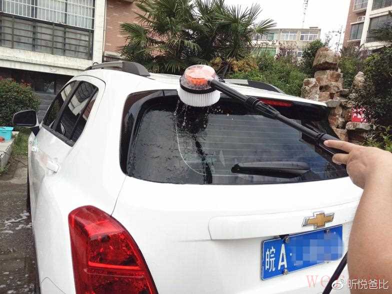 对于边角和车顶的顽渍,可以使用旋转毛刷进行重点清洁。像车顶经常会落上鸟粪、虫屎、树上滴落的油脂类的东西,用上旋转毛刷后,在水的压力下刷子会旋转出水,加之刷柄比较长,可以伸到车顶清洗,各种顽固污渍都能刷洗掉。