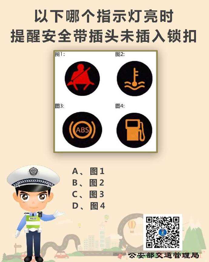 #驾照考试科目一#以下哪个指示灯亮时,提醒安全带插头未插入锁扣?